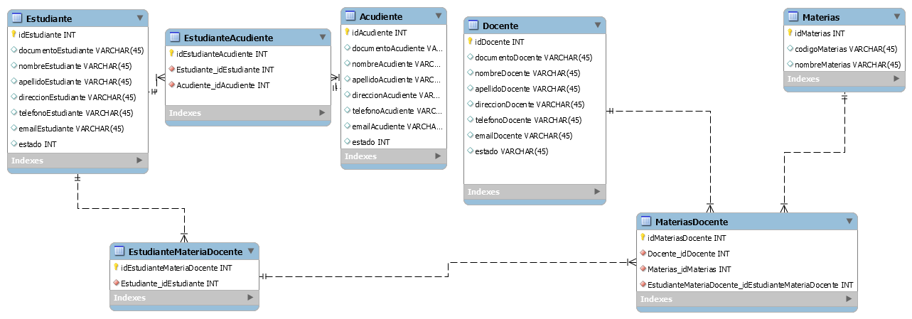 Tambien se debe almacenar la informaciòn del docente(codigo, nombre, telèfono, email) que le dicta la materia al estudiante, tenga presente que un docente puede dictar varias materias.